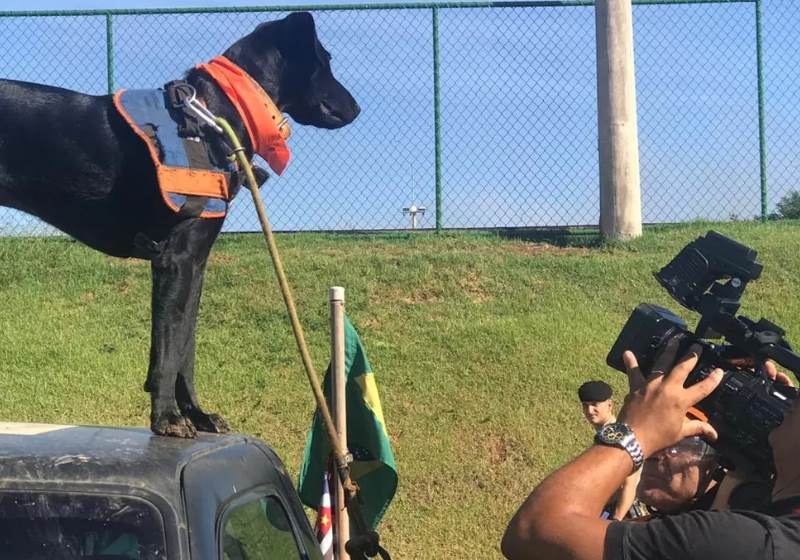 Na quarta-feira (30), o cachorro ajudou o Corpo de Bombeiros nas operações.