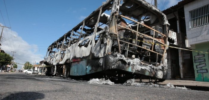 Ônibus incendiado na Avenida Francisco Sá, no bairro Carlito Pamplona