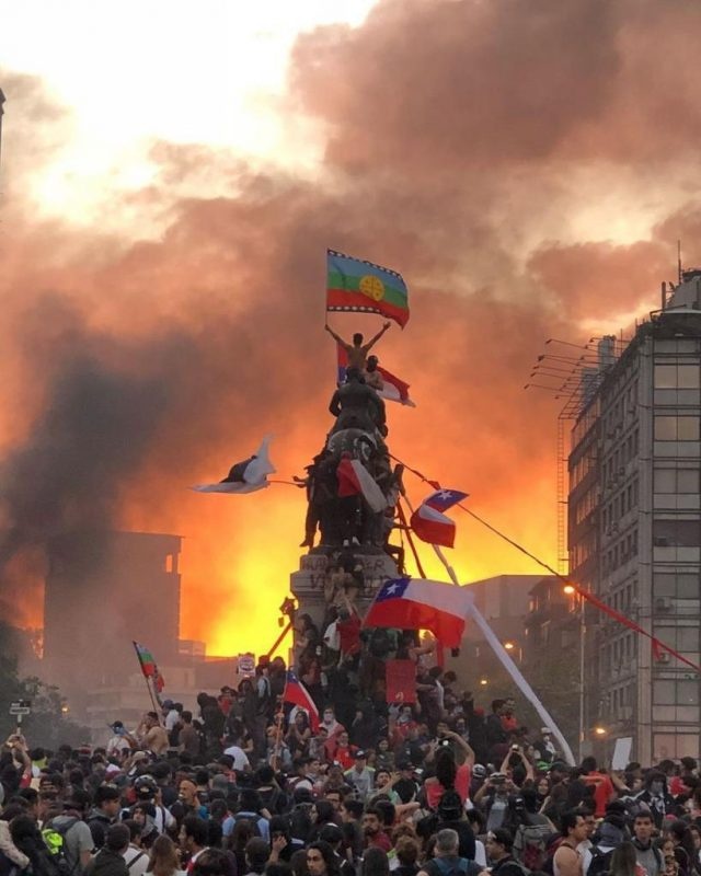 Estamos falando das maiores manifestações já vistas na América Latina, talvez neste século. Os protestos dos dias 25 de outubro (em pleno Estado de Exceção) e 8 de novembro chegaram a mobilizar mais de 2 milhões de pessoas, em um país de 18 milhões de habitantes. As imagens do Centro de Santiago totalmente inundado de gente com as bandeiras negras pelo fim do modelo econômico, as bandeiras mapuche pedindo respeito aos povos originários, os lenços verdes do movimento feminista, todos esses símbolos dominam o imaginário popular até hoje.