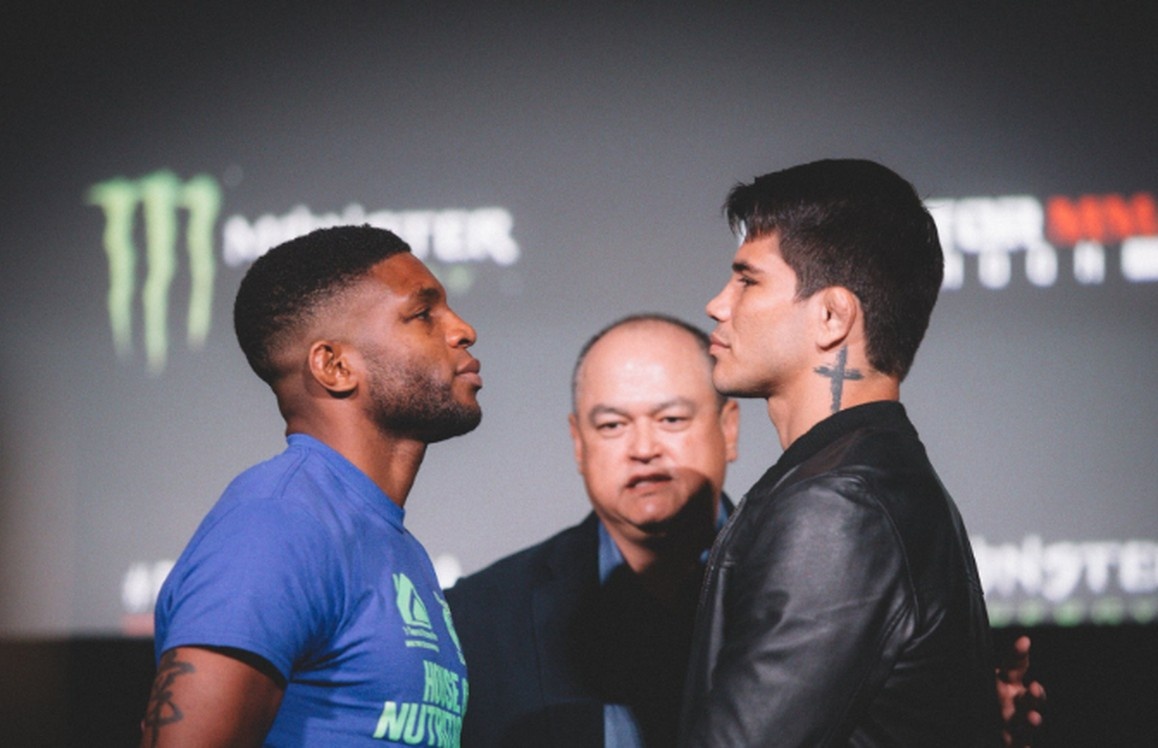 Atletas se encararam em frente ao local do evento Bellator 223 — Foto: Divulgação/Bellator