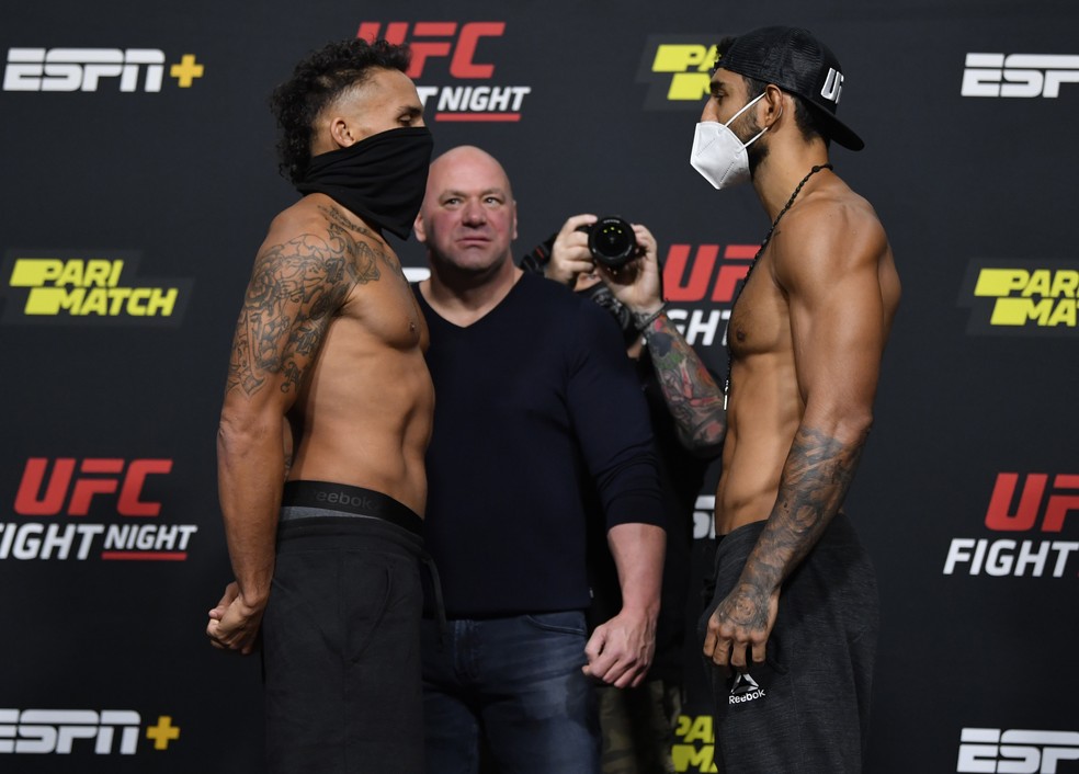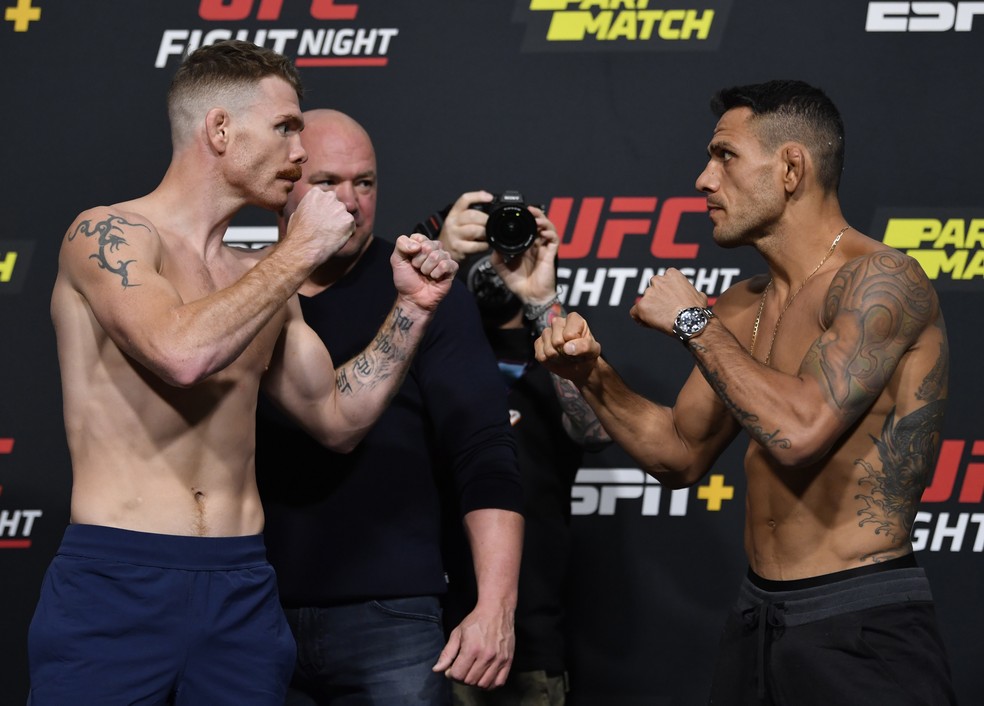 A encarada entre os dois atletas foi bem protocolar e respeitosa, assim como as dos outros lutadores do card. Dana White acompanhou bem de perto, mas não precisou interferir em nenhum momento.