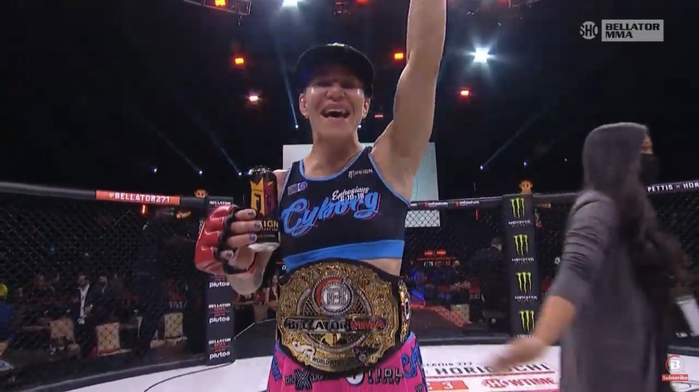 Cris Cyborg defendeu com sucesso o cinturão do Bellator — Foto: Reprodução
