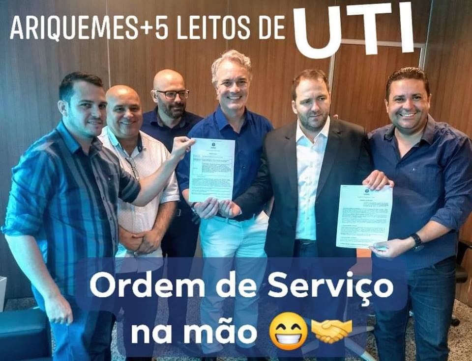 O Município de Ariquemes vai ganhar 5 (cinco) novos leitos de UTI adulto, que deverão serem credenciados junto ao Hospital São Francisco. Nesta quinta – feira (01), em Porto Velho, o governador Daniel Pereira assinou ordem de serviço para a instalação e credenciamento de 5 (cinco) leitos de UTI adulto no município, que beneficiará pacientes da grande região do Vale do Jamari, além de várias pessoas das cidades vizinhas tais como Jaru e Jorge Teixeira. Este foi um trabalho efetivo dos Vereadores Amalec da Costa, Renato Padeiro e Loro da SUCAM e contou com a colaboração do Deputado Alex Redano, esses leitos de UTI vai fazer de Ariquemes um centro de referência estadual em atendimento de saúde. Estou alegre em estar aqui celebrando as vidas que serão salvas por conta da instalação desses leitos de UTI, afirmou o vereador Amalec.