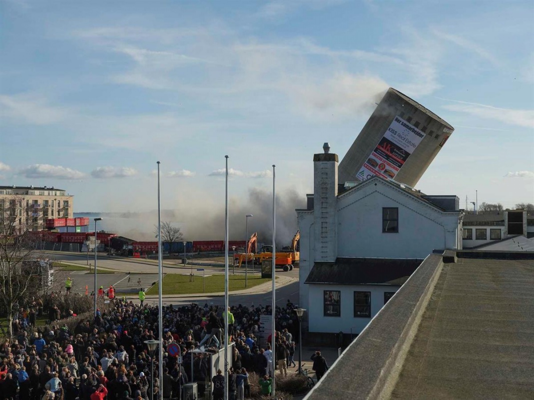 O incidente aconteceu na cidade de Vordingborg, na sexta-feira, perante o espanto das centenas de pessoas que se tinham juntado nolocal para assistir à demolição do silo de 53 metros. O centro cultural estava fechado e todos os trabalhadores tinham sido retirado do local por precaução.