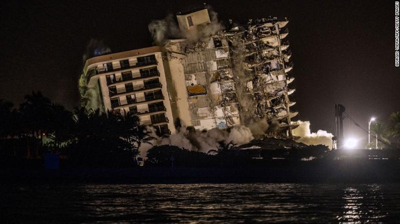 The structure was demolished around 10:30 p.m. ET Sunday using a method Miami-Dade County Mayor Daniella Levine Cava called "energetic felling," describing it as a process that "uses small, strategically placed explosives and relies on gravity to bring the building down in place."