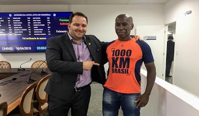 O deputado estadual Alex Redano (PRB), recebeu na tarde desta terça-feira (16) a visita do ultramaratonista rondoniense Alves Barbosa, que faz parte do seleto grupo de atletas que encaram a maior Ultramaratona da América do Sul, “1000 km Brasil”, que ocorre anualmente, na cidade de Paulo de Frontin, no Rio de Janeiro.