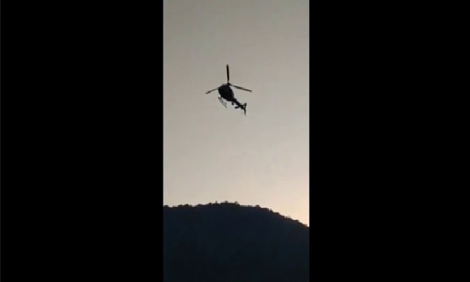 Helicóptero da Policia Federal toca o Hino Nacional em concentração de caminhoneiros.