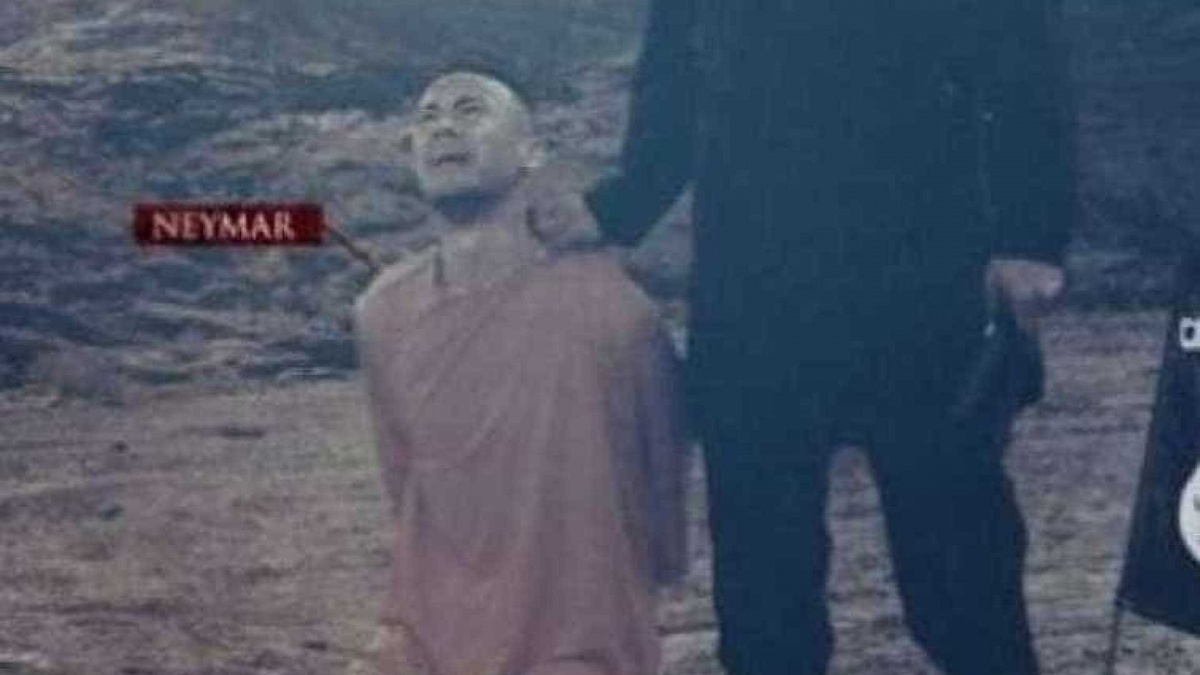 Nesta terça-feira (26), o EI divulgou novamente algumas montagens com Messi, Neymar, CR7 e outros participantes da Copa 'degolados' e de joelhos.