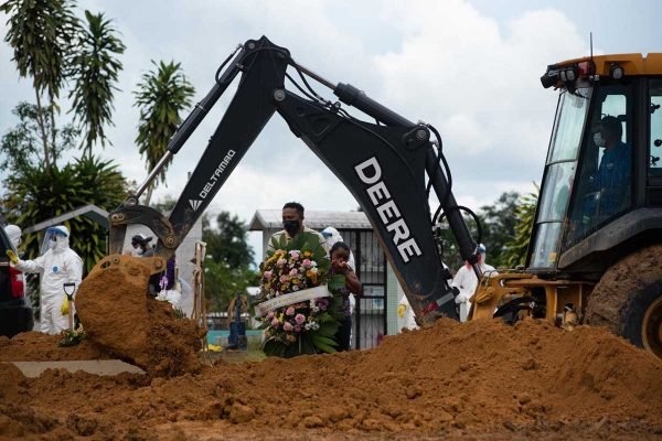 Em Manaus, retroescavadeiras viram coveiros e famílias têm 5 minutos para enterrar parentes