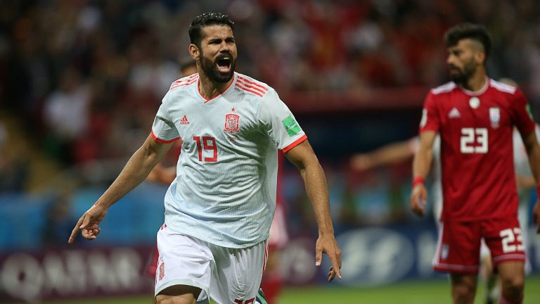 Aos 8 minutos do segundo tempo, Diego Costa abriu o placar para a Espanha em partida contra o Irã. O gol veio após passe do meia Iniesta.