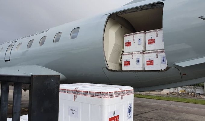 Mil doses da CoronaVac e cilindros de oxigênio desembarcaram, na manhã desta terça-feira (19), na cidade de Tabatinga, na fronteira entre o Amazonas, a Colômbia e o Peru.
