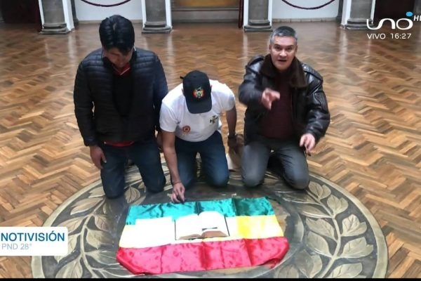Ele insiste em cada uma de suas mensagens com a necessidade de levar “a Bíblia” de volta ao palácio do governo boliviano, que, segundo ele, foi eliminada pelo MAS.