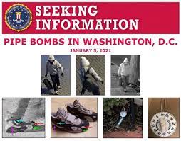 O FBI divulgou novas imagens do suspeito de plantar bombas na sede dos dois grandes partidos norte-americanos na noite anterior à invasão ao Capitólio. Nas imagens, um homem encapuzado, com máscara e segurando uma mochila é visto andando por pelo menos Quatro pontos dos arredores do Congresso. Ele chega a sentar em um banco em frente a sede dos Democratas por volta das 19h50.