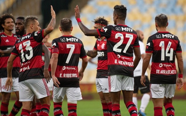 Três minutos depois, o camisa 27 quase ampliou o marcador. Em cobrança ensaiada no escanteio, Arrascaeta cruzou na área, e Bruno Henrique foi no segundo andar para cabecear. A bola tinha endereço, mas o goleiro Douglas salvou com a mão trocada e manteve o placar com vantagem mínima.