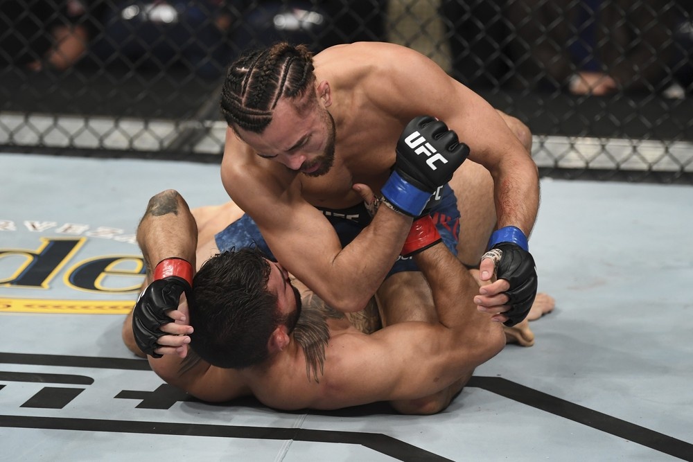 Vindo de duas derrotas seguidas, o peso-pena Jordan Griffin estava pressionado para conseguir a sua primeira vitória no UFC diante de TJ Brown. E ela veio aos 3m38s de luta no segundo round, através de uma guilhotina muito bem aplicada, que acabou deixando o rival inconsciente no chão do octógono.