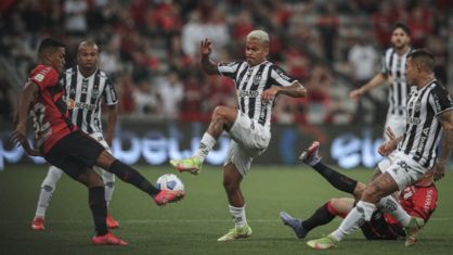 Aos poucos, o Galo, que estava atuando mais retraído, voltou a engatar ataques. Guilherme Arana encaixou investida pela esquerda e cruzou rasteiro, mas Santos se antecipou. Em seguida, Allan fez o goleiro do Furacão se esticar para salvar.