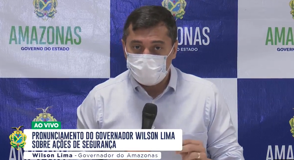 O governador do Amazonas, Wilson Lima (PSC), fez um pronunciamento, no começo da noite deste domingo, 6, após a onda de violência no Estado que começou ainda na madrugada. Segundo o governador, os atos de vandalismo foram uma reação de criminosos às ações de enfrentamento contra o tráfico de drogas. “O Estado do Amazonas fez, no ano passado, uma apreensão recorde de drogas, 19 toneladas. Só este ano, de janeiro a maio, já foram apreendidas 11 toneladas. E já foram apreendidas, de janeiro a abril, 832 armas”, detalhou Lima, em transmissão veiculada nas redes sociais. Ainda de acordo com o governador, o número de policiais nas ruas foi triplicado e barreiras foram instaladas em locais estratégicos. “Já identificamos alguns possíveis mandantes. Quatorze pessoas já foram presas, dentre elas um dos líderes dos ataques coordenados em Manaus e nos municípios de Parintins e Careiro Castanho”. Até o momento foram registrados apenas danos materiais e nenhuma pessoa ficou ferida.