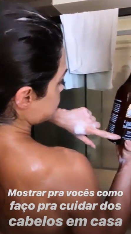 Após o banho, a morena secou os fios e os exibiu brilhantes na função Stories do Instagram. No domingo (23), a musa publicou uma foto para lá de sensual em seu perfil e causou o maior alvoroço. No clique, surgiu nua.