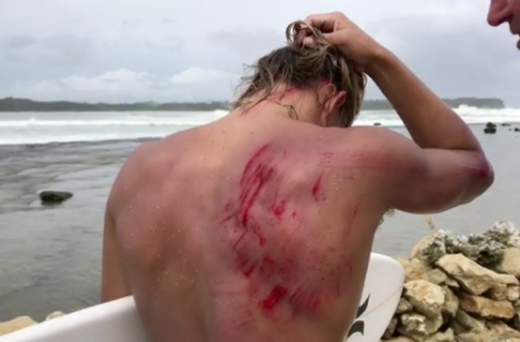O havaiano Koa Smith tomou um susto durante uma sessão de surf na ilha de Nias, na Indonésia, nesta quinta (19). Após cair em uma onda, ele bateu contra a bancada de corais e sofreu cortes no braço, nas costas, no pescoço e na nuca. Ele sofreu uma concussão e terá que passar alguns dias fora da água, mas não corre perigo.