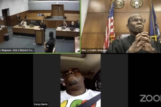 Assim que Harris entrou no aplicativo Zoom, o juiz J. Cedric Simpson perguntou a Harris se ele estava dirigindo. “Na verdade, estou chegando ao consultório do meu médico, então me dê um segundo. Estou estacionando agora mesmo", respondeu Harris.