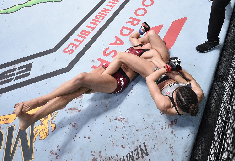 Mackenzie Dern finalizou Randa Markos com uma chave de braço no UFC Covington x Woodley — Foto: Getty Images
