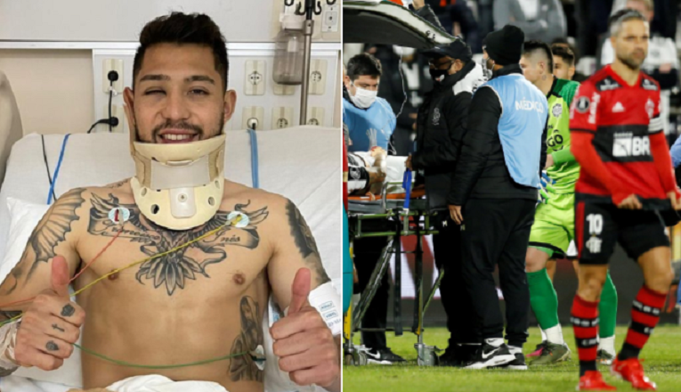 O lateral Victor Salazar tratou de tranquilizar os torcedores do Olimpia após sofrer um traumatismo craniano na derrota para o Flamengo, na última quarta-feira, 11, no Paraguai, pelas quartas de final da Copa Libertadores da América. Através de sua conta no Instagram, ainda do hospital, o jogador escreveu que o “pior já passou”, se referindo ao choque com o meio-campista Giorgian De Arrascaeta. Salazar, porém, aproveitou a publicação para reclamar da arbitragem, que não advertiu o atleta do Rubro-Negro carioca no lance. “Obrigado aos médicos, meus companheiros e todos que se preocuparam com a minha saúde. Me contaram que isso não terminou em cartão vermelho. Valeu!”