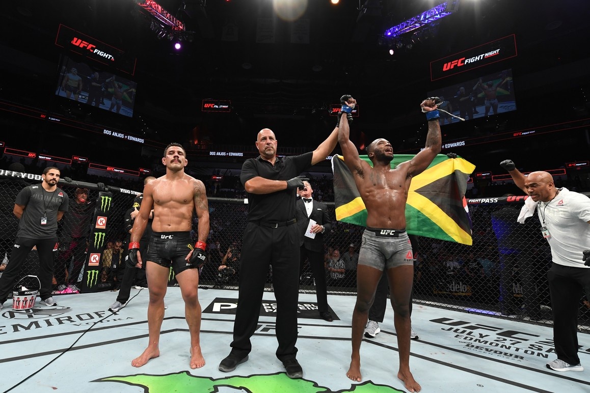 Leon Edwards venceu Rafael dos Anjos por decisão unânime (50-45, 49-46 e 49-46)