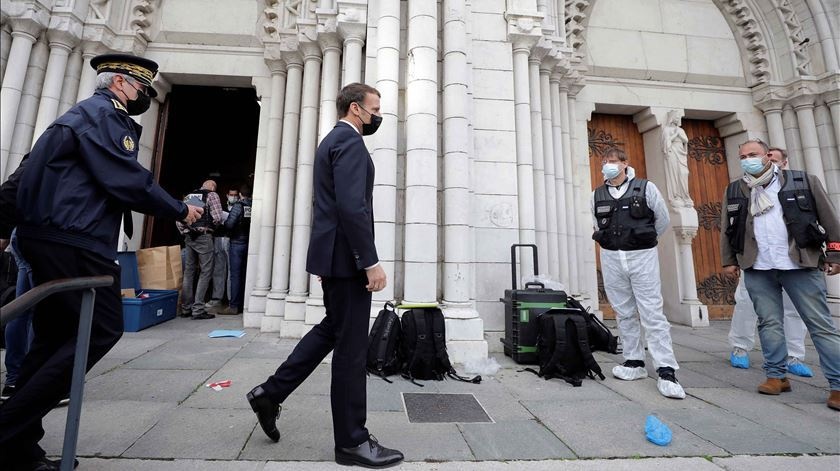O presidente Emmanuel Macron, da França, visitou Nice, nesta quinta-feira (29), para acompanhar os desdobramentos do ataque terrorista contra a Basílica de Notre-Dame.