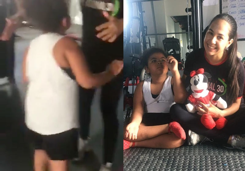 A menina treina 5 dias por semana na academia com a personal Débora França, de 25 anos, que vai se formar em agosto na Unopar, no curso de Educação Física.