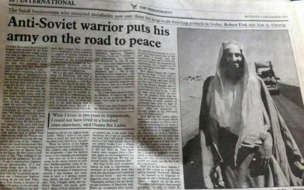No entanto, bem antes dessa fatídica data e de ter se tornado um dos dez foragidos mais procurados pelo FBI, bin Laden, que foi declarado morto em 2011 após uma operação militar no Paquistão, era considerado um importante colaborador dos EUA contra os comunistas. O jornal americano “The Independent” chegou até a estampar uma reportagem com a foto de Bin Laden e a chamada: “Guerreiro antissoviético coloca seu exército no caminho da paz”.