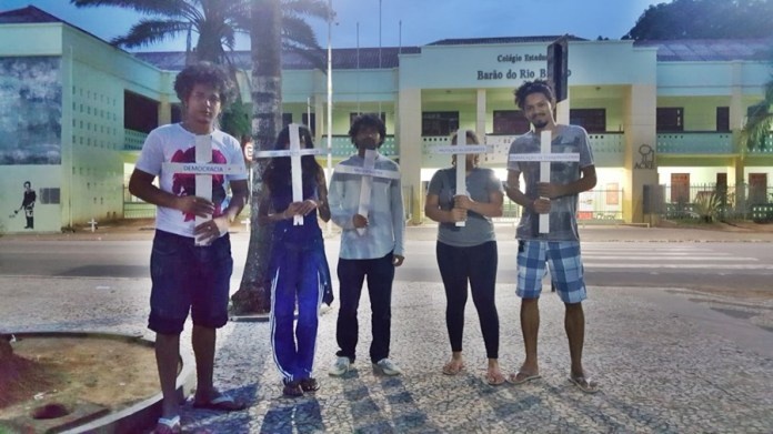 Militantes da UJS espalham cruzes em Rio Branco contra reforma aprovada por Temer