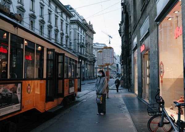 O transporte público em Milão estava vazio às 18h na quarta-feira passada. Crédito … Andrea Mantovani para o New York Times