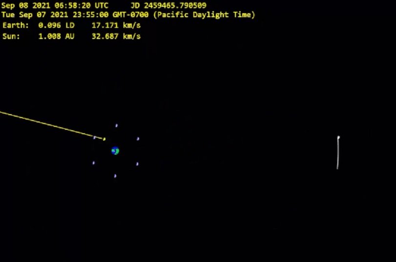 A Agência Espacial dos Estados Unidos (Nasa) registrou na última quarta-feira, 8, o asteroide a passar mais próximo à Terra em todo o ano de 2021. Chamado de 2021 RS2, o fragmento de cometa foi considerado como “pequeno” pelos especialistas e foi descoberto quando estava na região do Arizona, nos Estados Unidos, ainda no dia 7. O ponto mais próximo dele em relação à Terra, porém, foi registrado quando o asteroide estava sobre o Japão a uma distância de 15,3 mil quilômetros e a uma velocidade de 63 mil km/h do planeta. De acordo com especialistas, a distância do fragmento de cometa foi um pouco maior do que o diâmetro da Terra e se estivesse um pouco mais perto, o asteroide poderia ter se desintegrado na atmosfera sem apresentar qualquer ameaça. Até o momento, o asteroide mais próximo a passar da Terra em 2021 tinha sido o CZ3, registrado em 9 de fevereiro de 2021. Veja, abaixo, simulação da passagem do 2021 RS2.