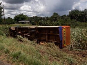 Segundo informações do motorista, ele seguia sentido a área urbana, após ter recolhido as crianças da área rural, em dado momento o volante passou a não responder e o veículo foi saindo da pista até tombar na lateral da via.