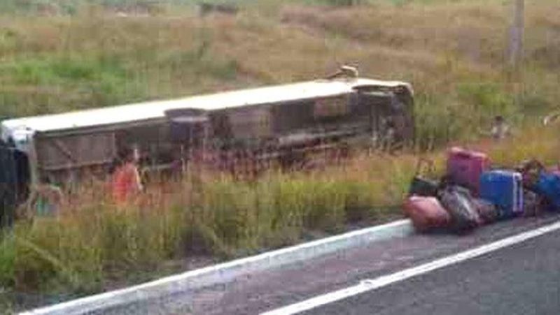 Ônibus tomba a caminho de jogos escolares. Um jovem morre e há feridos