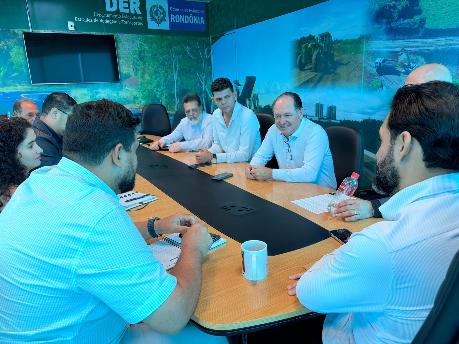 O deputado estadual Pedro Fernandes (PRD) participou de reunião no Departamento Estadual de Estradas de Rodagem e Transportes (DER) para tratar de demandas prioritárias de infraestrutura nos municípios de Monte Negro, Cacaulândia e Urupá. O encontro contou com a presença do diretor-geral do DER, Éder André Fernandes, do diretor-adjunto Anderson Dias, do prefeito de Monte Negro, Ivair Fernandes, e do vice-prefeito de Cacaulândia, Manuel Fernandes, vereador Rodrigo Gomes de Cacaulândia, vereador Joel da Pá de Urupá, e demais representantes desses municípios.