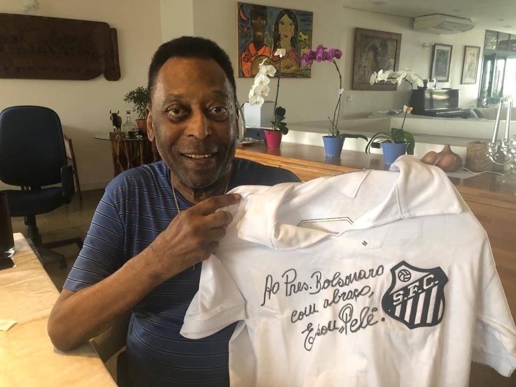 Jair Bolsonaro (sem partido) utilizou as redes sociais na manhã desta sexta-feira, 20, Dia da Consciência Negra, para compartilhar uma homenagem que recebeu de Pelé. Na publicação, o “Rei do Futebol”, que completou 80 anos de idade recentemente, aparece segurando uma histórica camisa do Santos autografada. “Ao presidente Bolsonaro, com abraço, Edson Pelé”. O presidente da República, então, agradeceu o ex-jogador do Santos e da seleção brasileira. “Obrigado, Pelé. Bom dia a todos”, publicou Bolsonaro.