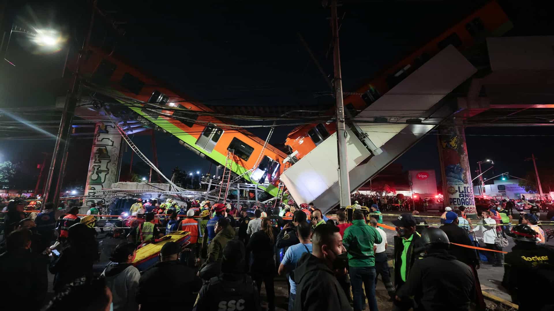 O acidente ocorreu à noite, quando uma ponte da linha 12 do metropolitano de superfície, perto da estação Olivos, no sul da cidade, se desmoronou, no momento em que passava uma composição de várias carruagens.