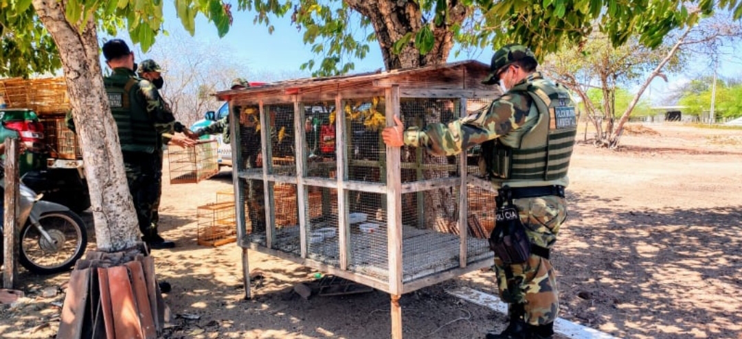 Polícia Ambiental apreende mais de 60 pássaros silvestres durante operação na Gangorra, zona rural de Tibau