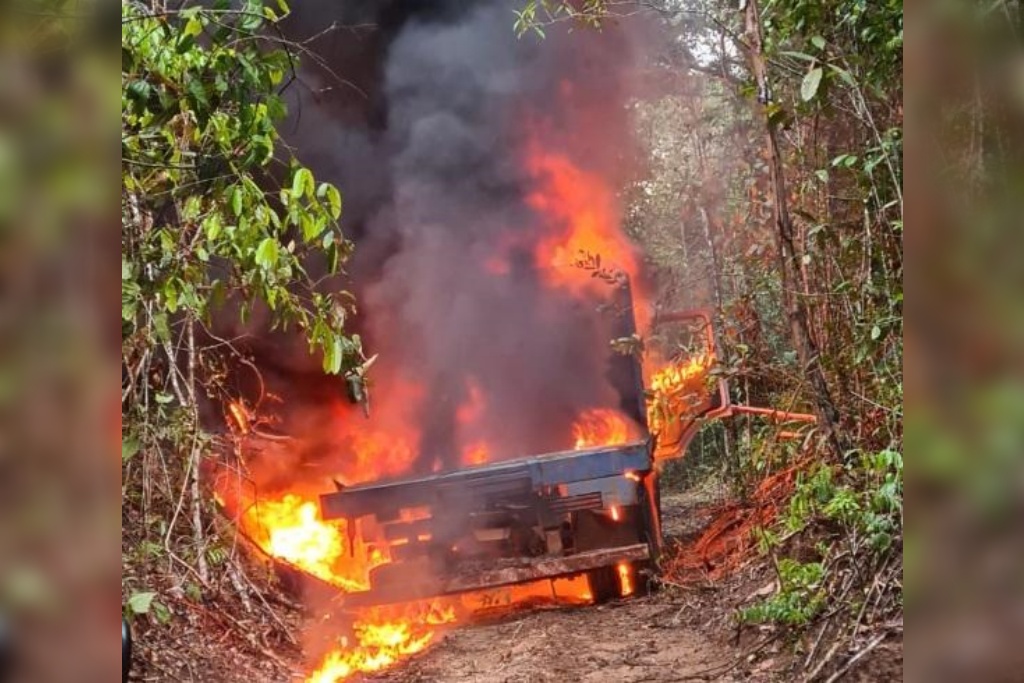 Um caminhão e um trator foram queimados na quarta-feira (24) durante a Operação Ajuricaba 8, da Polícia Federal e do Ibama (Instituto Brasileiro de Meio Ambiente e Recursos Renováveis), contra o desmatamento ilegal nas terras indígenas Parque Aripuanã e Serra Morena, ambas na região do município de Aripuanã (1.002 km de Cuiabá).