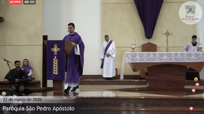 Por conta do coronavírus, paróquias transmitem missas pela internet para evitar aglomerações