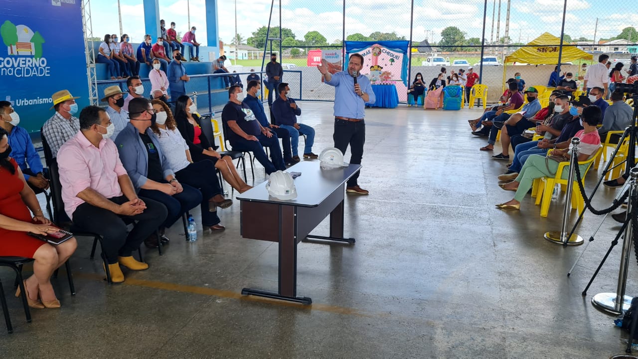 O deputado participou da solenidade de lançamento dos programas Tchau Poeira, Governo na Cidade e Mamãe Cheguei, em Seringueiras. O Tchau Poeira vai assegurar o asfaltamento de cinco quilômetros de ruas e avenidas da cidade, num investimento de aproximadamente R$ 3 milhões, com a assinatura do termo de cooperação pelo governador Marcos Rocha com a prefeitura, através do prefeito Armando Bernardo (MDB).