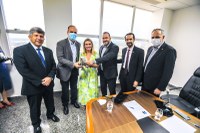 Presidente Alex Redano e deputados recebem presidente da Unale, Ivana Bastos