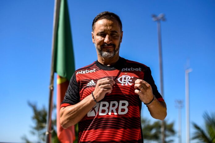 Vitor Pereira teve dia de mergulho no Flamengo. Foram 14 horas de trabalho do Galeão ao Centro de Treinamentos. Desembarcou no Rio pouco depois das 6h, tomou café da manhã com Marcos Braz e Bruno Spindel na sequência e fez longo tour pelo Ninho do Urubu antes de comandar treino marcado por muita intensidade aos olhos de pessoas que acompanharam a atividade.