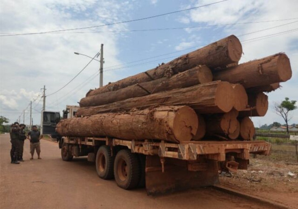 Um caminhão carregado de toras de ipê foi flagrado pelo Batalhão de Polícia Ambiental em Espigão do Oeste (RO), na última semana. Os agentes também localizaram um rádio comunicador e um amplificador de frequência no veículo.