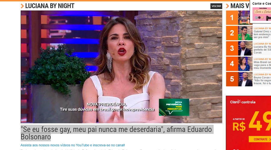 No título, o vídeo anuncia: “Se eu fosse gay, meu pai nunca me deserdaria”, afirma Eduardo Bolsonaro. Mas o conteúdo é todo relacionado à reforma da Previdência, primeiramente com explicações do filho de Jair Bolsonaro (PSL) e depois com a própria apresentadora, que é garota-propaganda da proposta governista.
