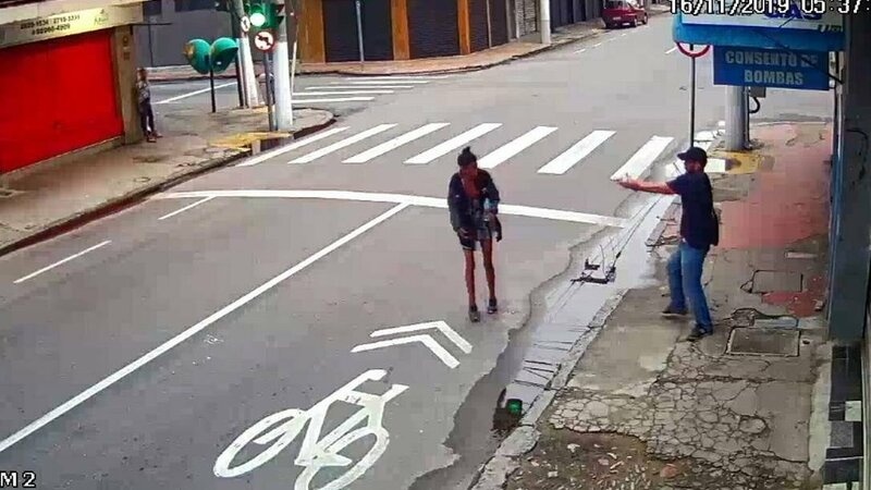 No vídeo vê-se Néia, 31 anos, aproximar-se de um homem, entretanto identificado pela polícia como Aderbal Castro, e pedir um real, cerca de 20 cêntimos de um euro, de acordo com as autoridades e as testemunhas no local.