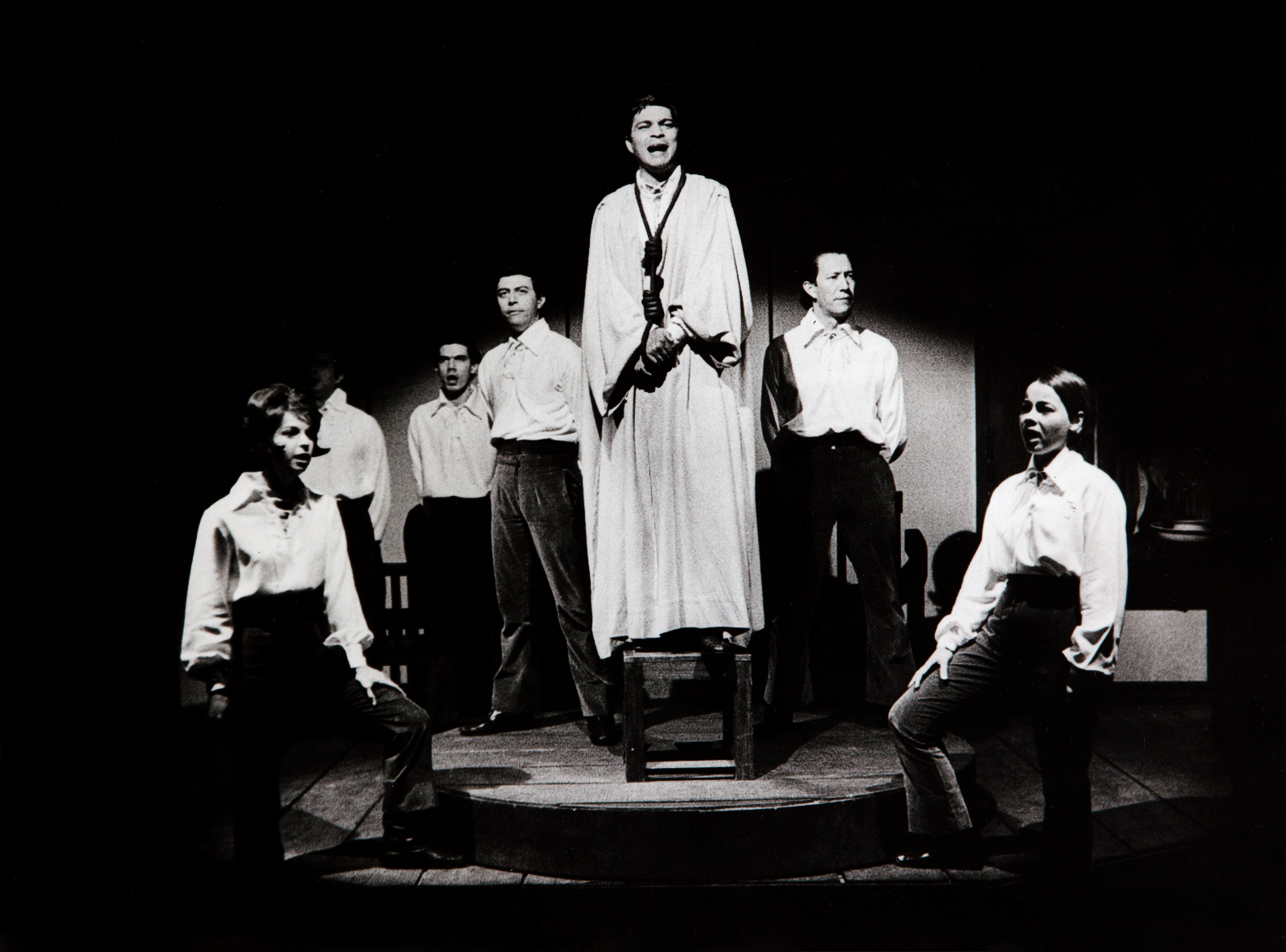 E, em nosso otimismo ingênuo, eu e meus companheiros nos entusiasmávamos mesmo era com a primeira parte da peça, em que a conspiração vai sendo engendrada, até culminar numa reunião apoteótica na qual cada um relata o papel que desempenhará no dia do levante.