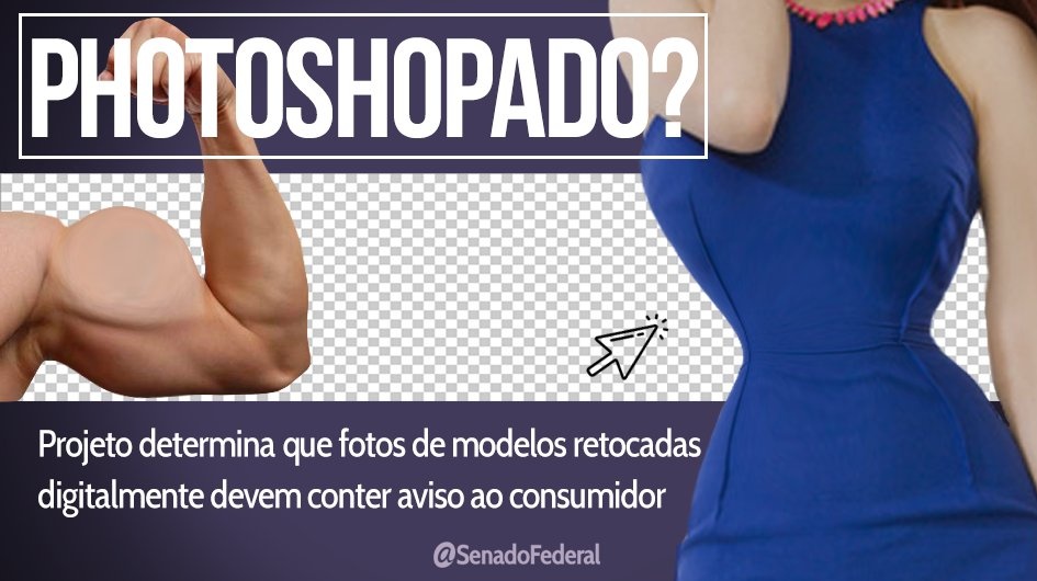 Fotografias publicitárias com retoques digitais em modelos deverão vir com a tarja informativa “Fotografia Retocada”. bit.ly/2DjC4UR. Dê a sua opinião: bit.ly/PLS439-2017 pic.twitter.com/KbLkZRzaMx