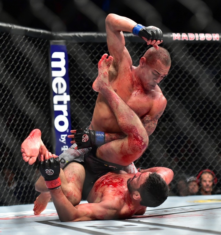 - O sangue entrou nos meus olhos e eu não conseguia enxergar. Eu queria o nocaute, mas o UFC só me dá caras duros. Me surpreendi, porque é muito difícil alguém se ferir como ele se feriu e continuar lutando. Mas nós, latinos, somos assim. Dedico essa vitória ao meu filho - disse o brasileiro após a luta.
